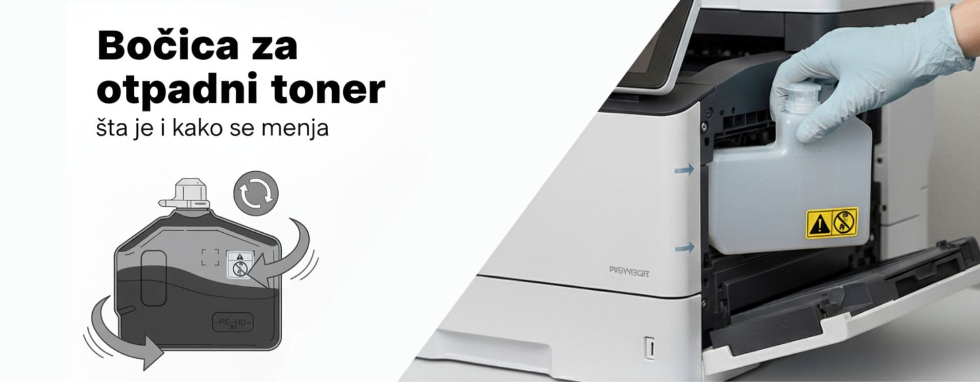Ako vam se na ekranu kopir aparata ili laserskog štampača pojavila poruka „Zamenite bočicu za otpadni toner“ – nemate razloga za brigu. To nije kvar niti znak da je toner pri kraju, već samo obaveštenje da je rezervoar za otpadni toner pun i da ga treba zameniti.