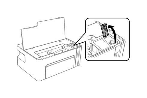 U četvrtom koraku otvorite čep na rezervoaru štampača. Pažnja ovaj postupak možete uraditi tek nakon što se pokretni delovi zaustave.