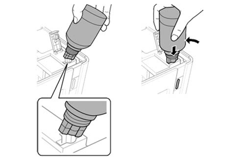 U ovom koraku nakon što se napuni rezervoar sa mastilom uklonite bočicu i zatvorite dobro poklopac na rezervoaru za mastilo. Kao što je prikazano na slici.